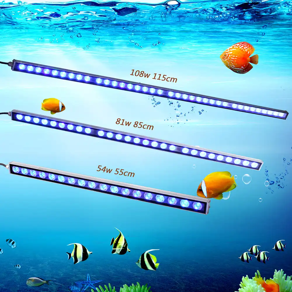 Led Aquarium Lamp Strip 54w 81w 108w Reef Coral Aquaponics Fish Tank Led Marine Light Bar White Blue Uv 55cm 85cm