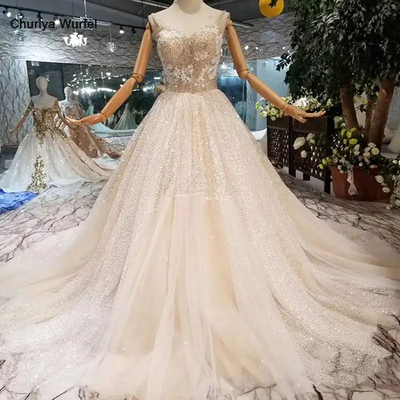 Light Champagne Wedding Dresses Handmade Flower Beading Sequined