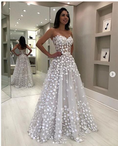 Unique A Lline Wedding Dresses Sweetheart Handmade Flowers Boho