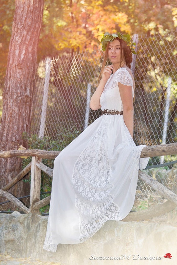 White Lace Bohemian Wedding Dress Boho Bridal By Suzannamdesigns