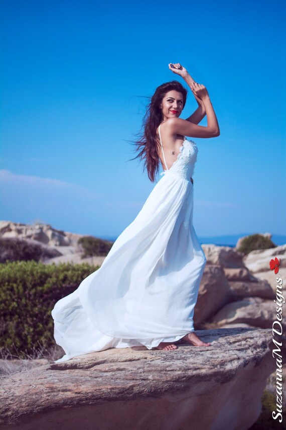 Noemi Handmade Bohemian Wedding Dress Off White Lace Chiffon Etsy