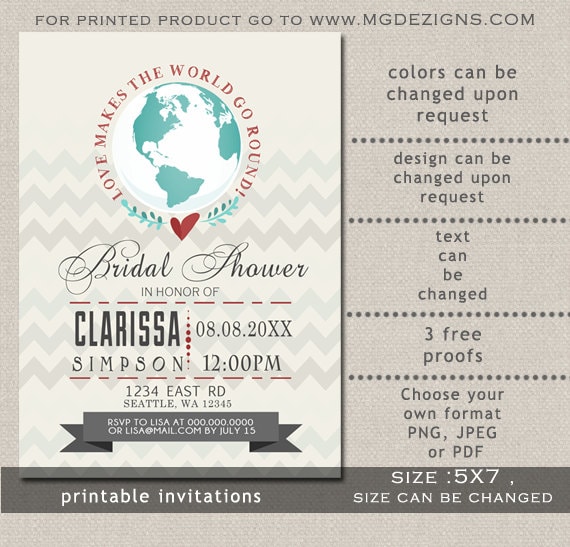 Image 0 Travel Theme Bridal Shower Wedding Invitations