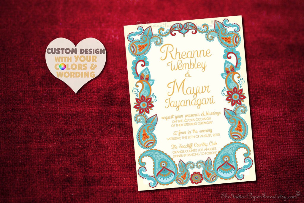 Royal Paisley Indian Wedding Card Indian Wedding Invitation Etsy