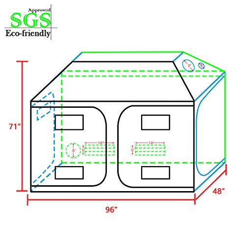 Quictent 96 X48 X71 Roof Cube Reflective Mylar Hydroponic Grow