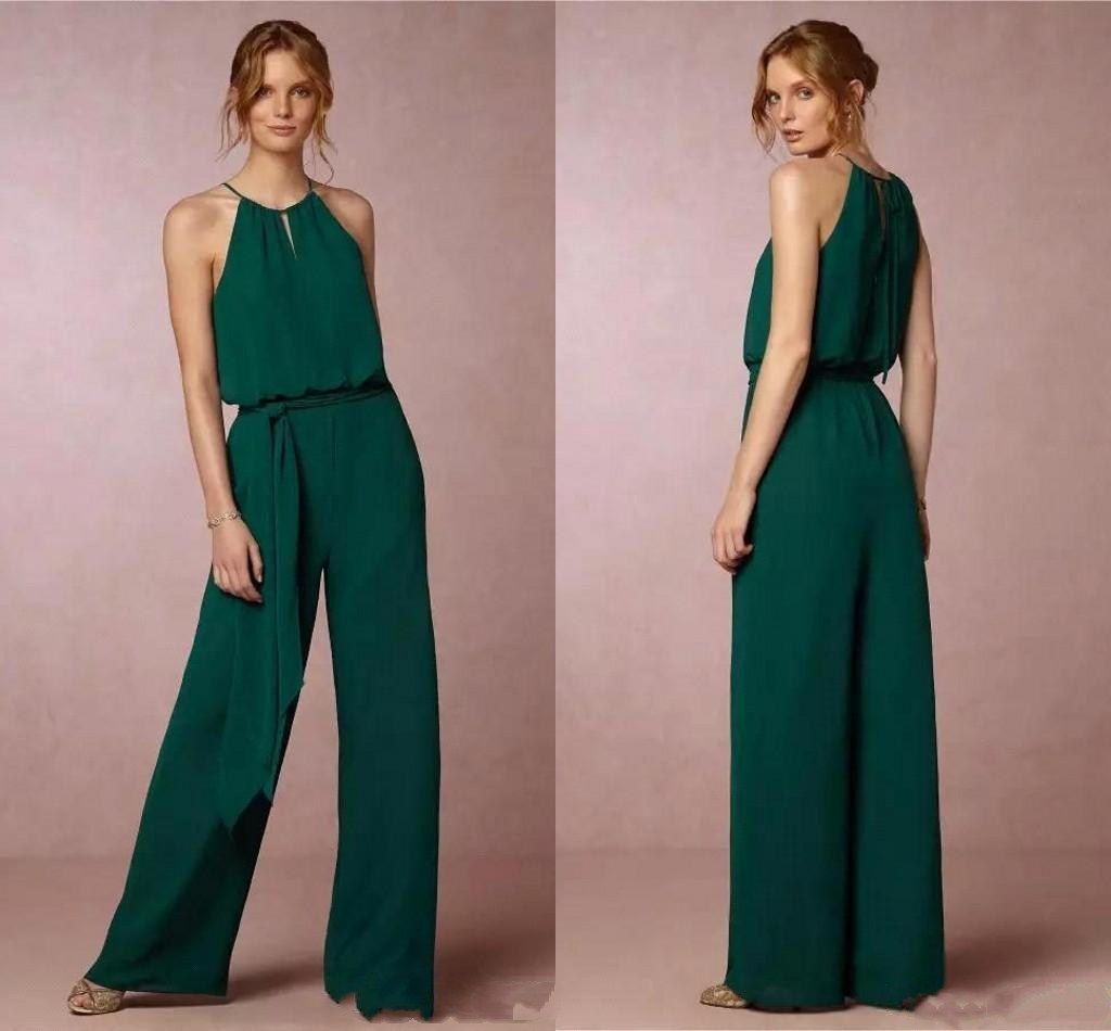 Country Style Chiffon Cheap Bridesmaid Pant Suits Dresses Halter