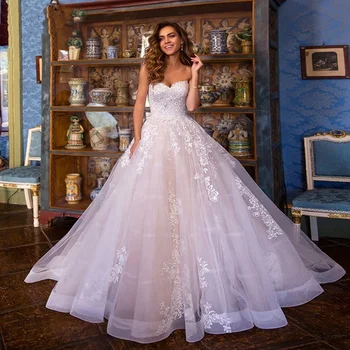 Vintage Lace Tulle Wedding Dress For Bride Long Sweetheart Evening