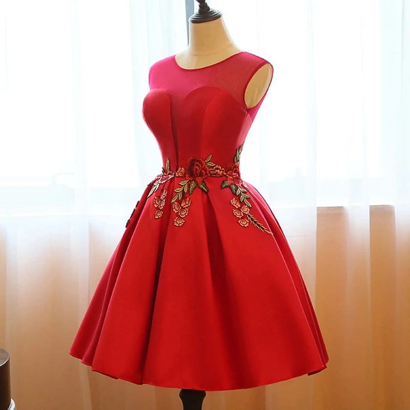 Bridesmaid Dresses Red Pretty Embroidery Flower Design Women