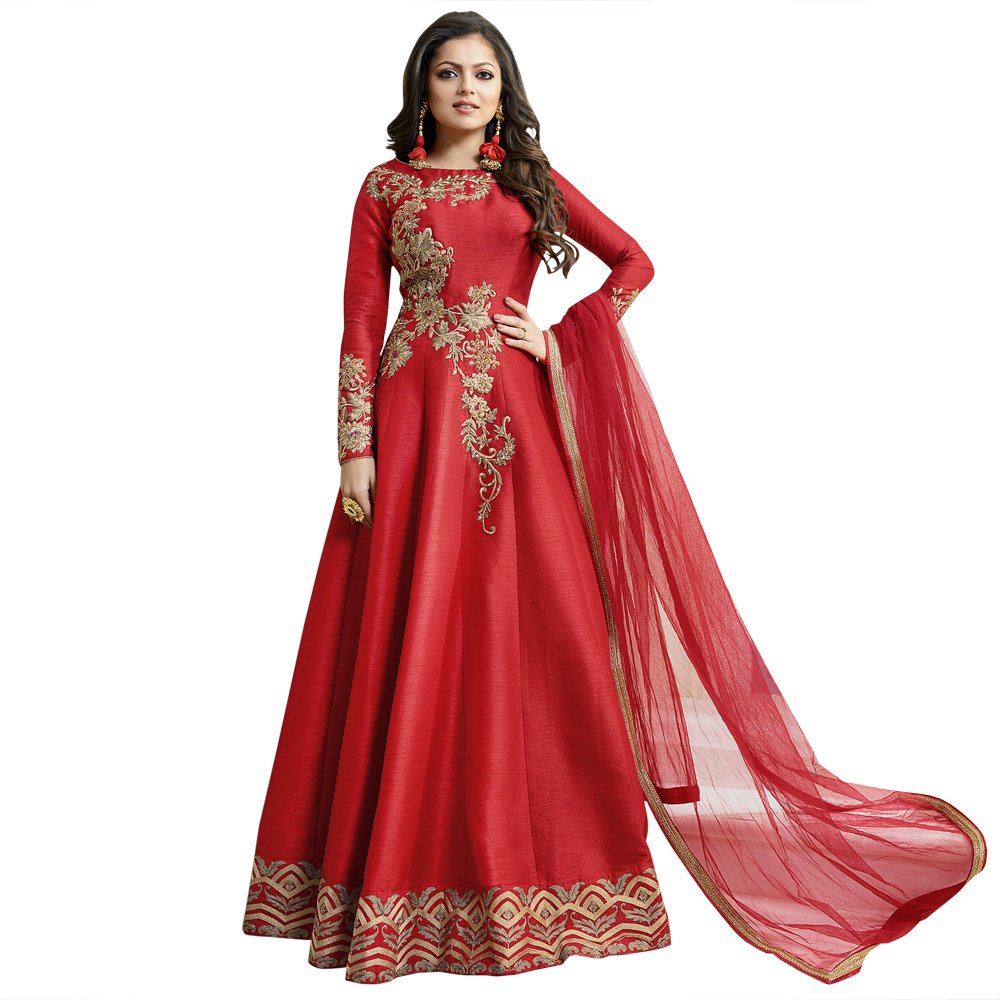 Dark Red Gown Dress Wedding Wear Designer Floor Length Anarkali