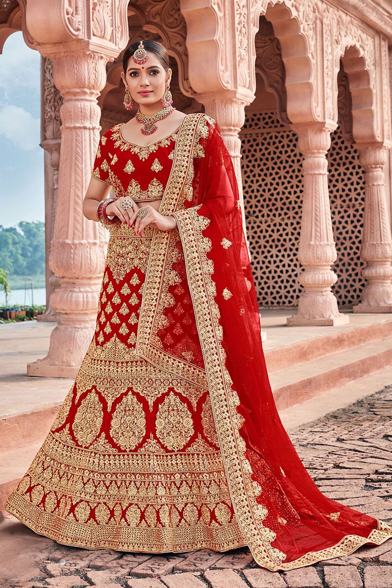 Bridal Wear Red Color Designer Velvet 3 Piece Lehenga Choli From