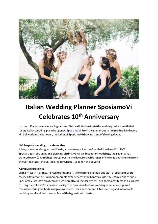 Italian Wedding Planner Sposiamovi Celebrates 10th Anniversary