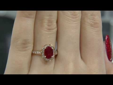2 05 Carat Oval Shaped Ruby And Diamond Halo Engagement Ring In