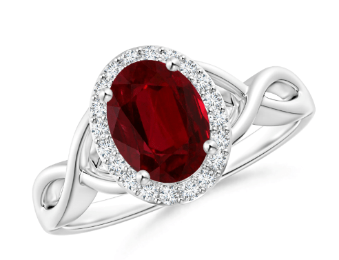 Emerald Cut Ruby Engagement Ring With Diamond Halo Angara