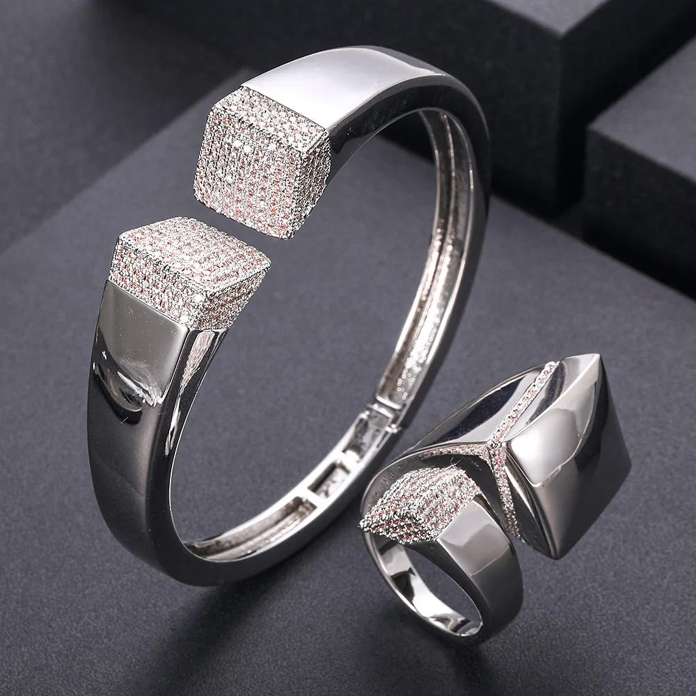 Full Aaa Cubic Zriconia Wedding Saudi Arabic Dubai Bangle Ring Set