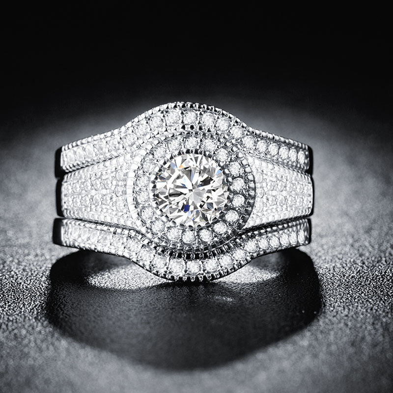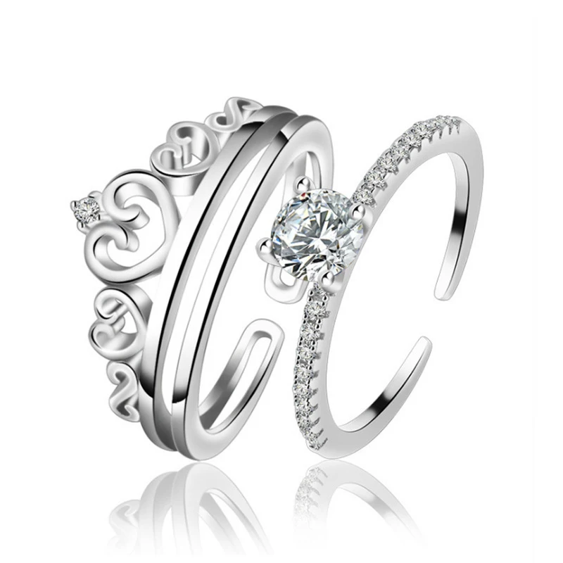 2020 New Luxury Crown Two In One 925 Sterling Silver Wedding Ring