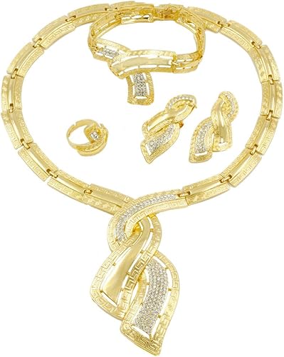 Wedding Bridal Jewelry Set Dubai Gold Color Crystal Women Party Neckl