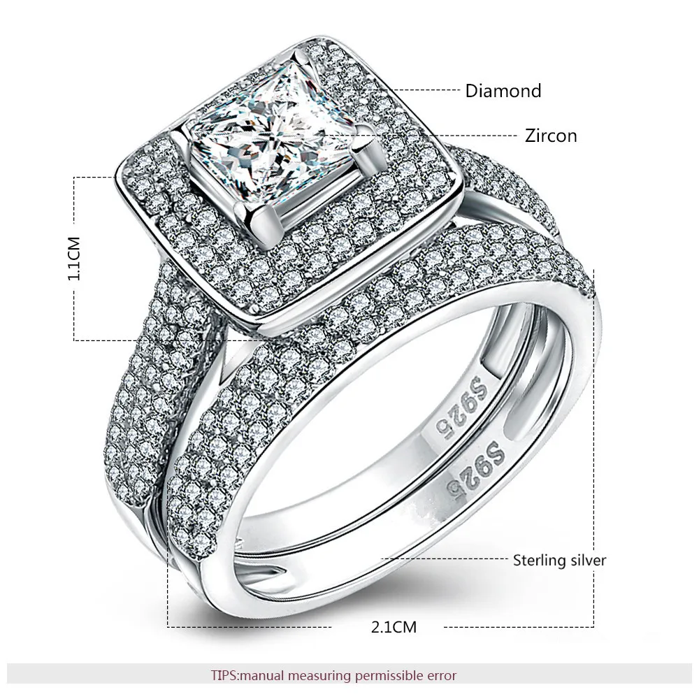 Original Dubai 925 Princess Cut Sterling Silver Set Of Wedding