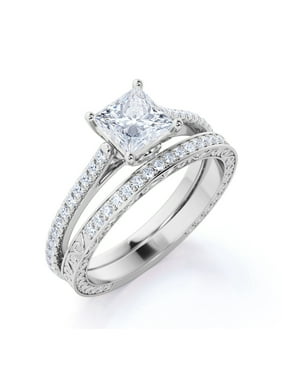 1 Carat Princess Cut Diamond Wedding Ring Set In White Gold