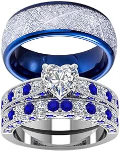 Amazon Com His And Hers Wedding Ring Set Matching Trio Wedding