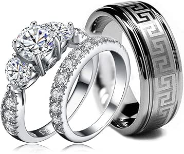 Amazon Com His And Hers Wedding Rings 3 Pc Wedding Ring Set