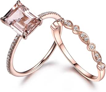 Amazon Com Emerald Cut Morganite Wedding Ring Set Diamond