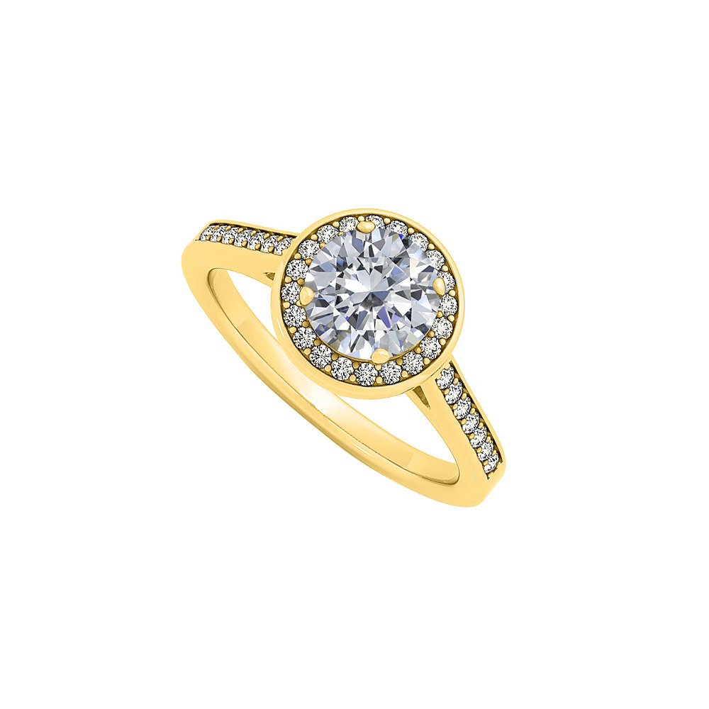 Cubic Zirconia Halo Engagement Ring In 14k Yellow Gold Precious